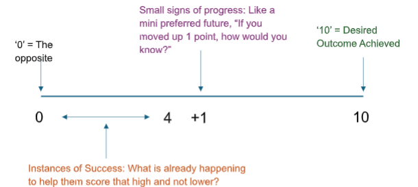 A Solution Focused scale is one of the tools that can be used to bring a little bit of